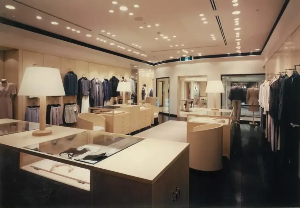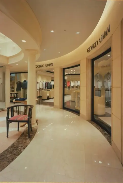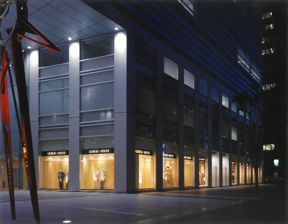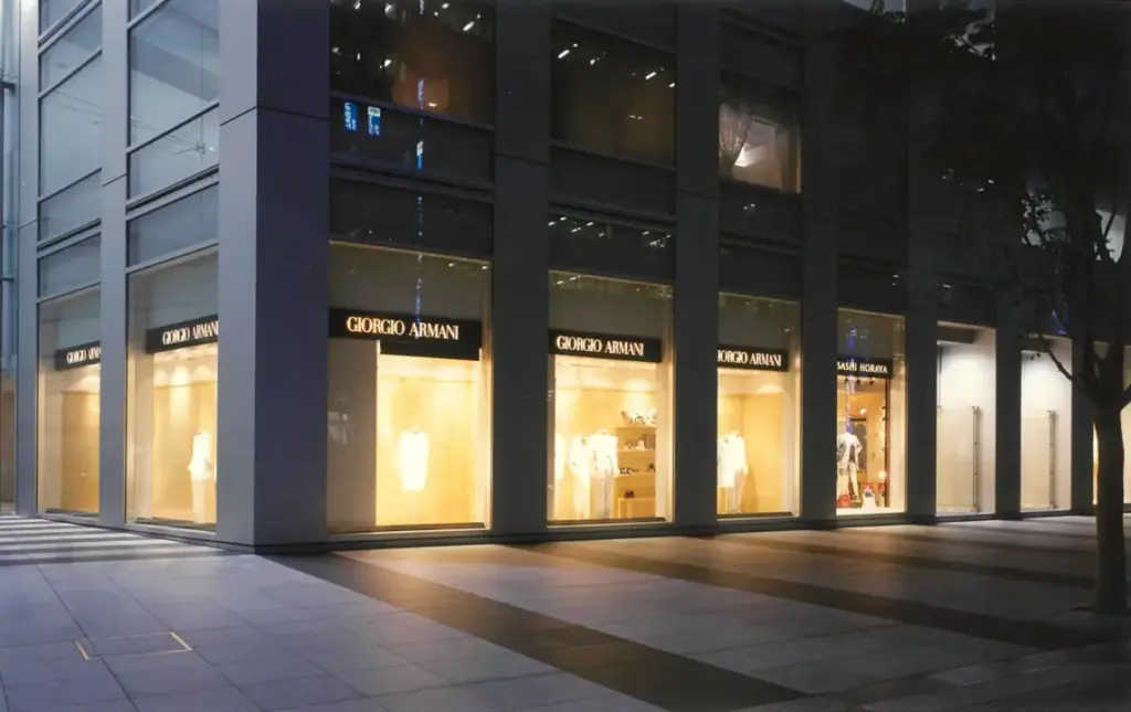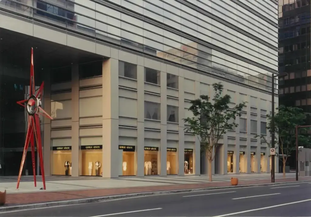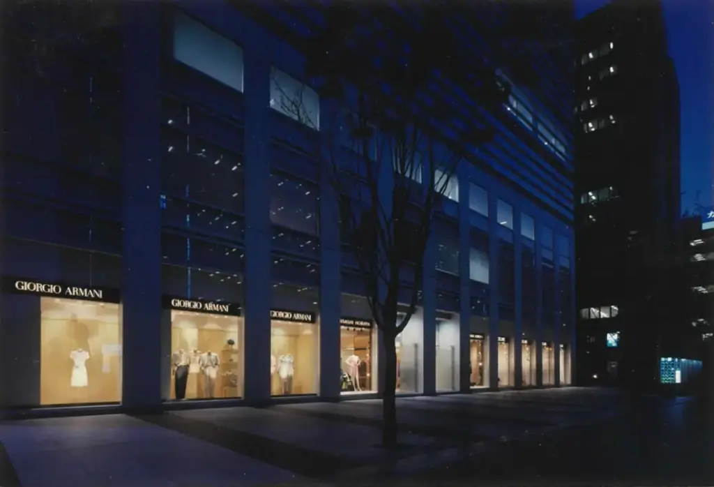 7メートルものセットバックがあるビルに大きなウインドウを配し、このGIORGIO ARMANIは当時アジアで一番美しい店舗と本国から評されました。