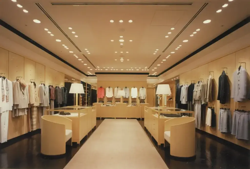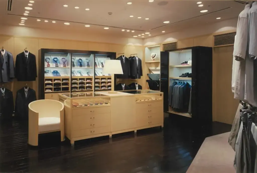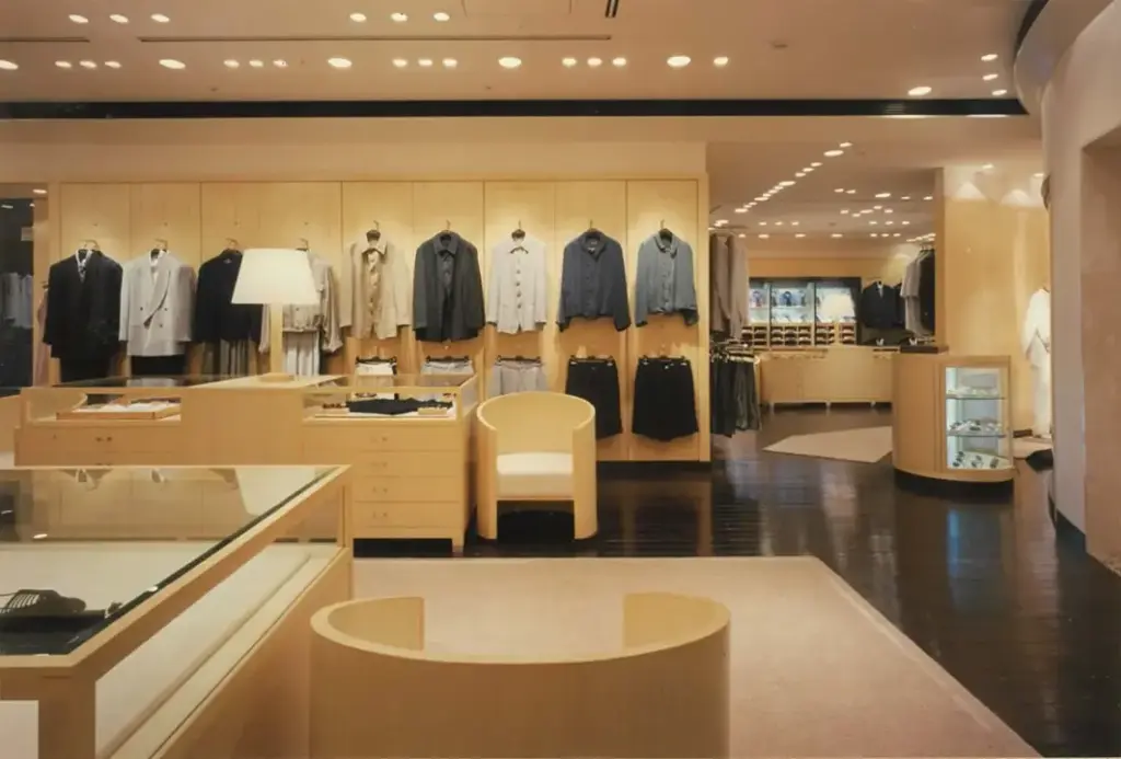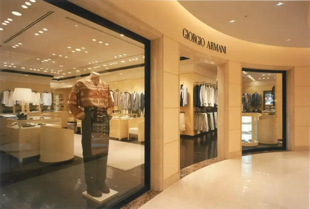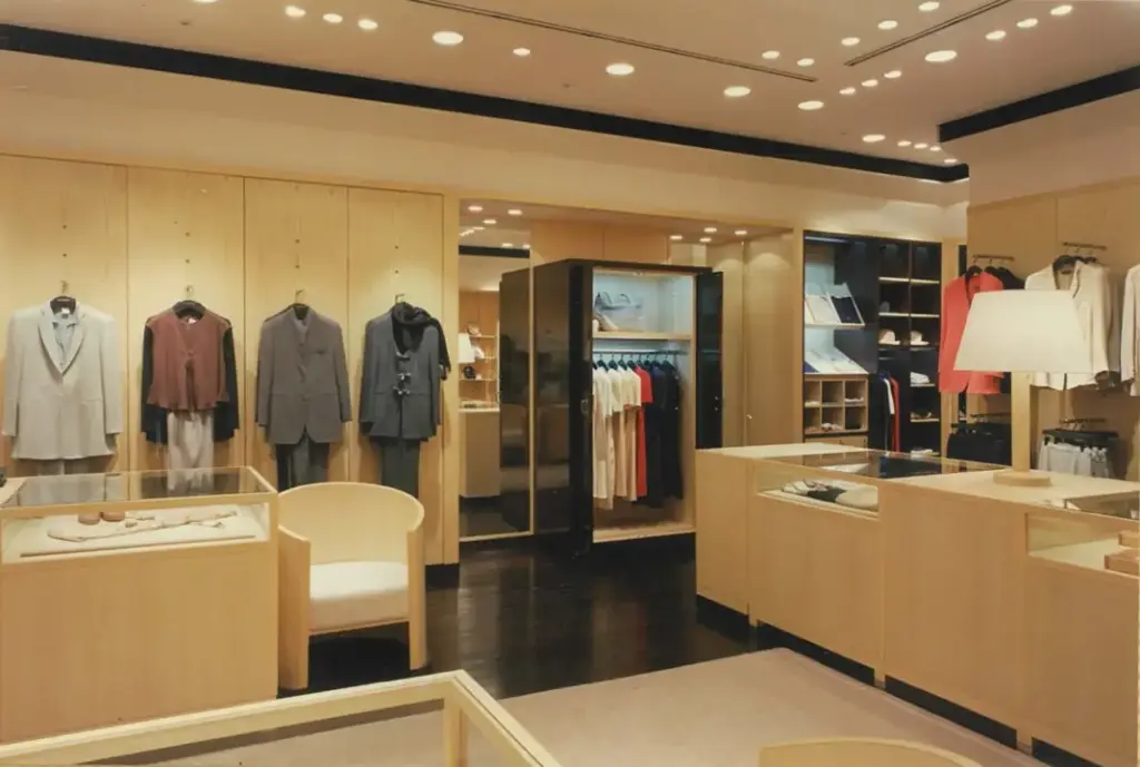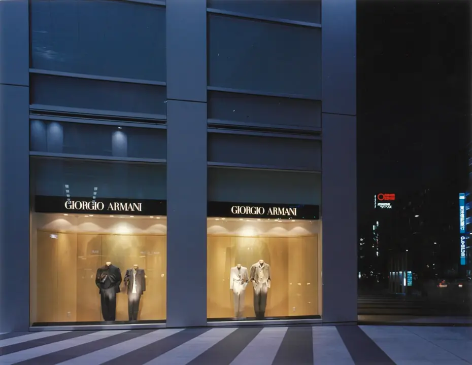 7メートルものセットバックがあるビルに大きなウインドウを配し、このGIORGIO ARMANIは当時アジアで一番美しい店舗と本国から評されました。